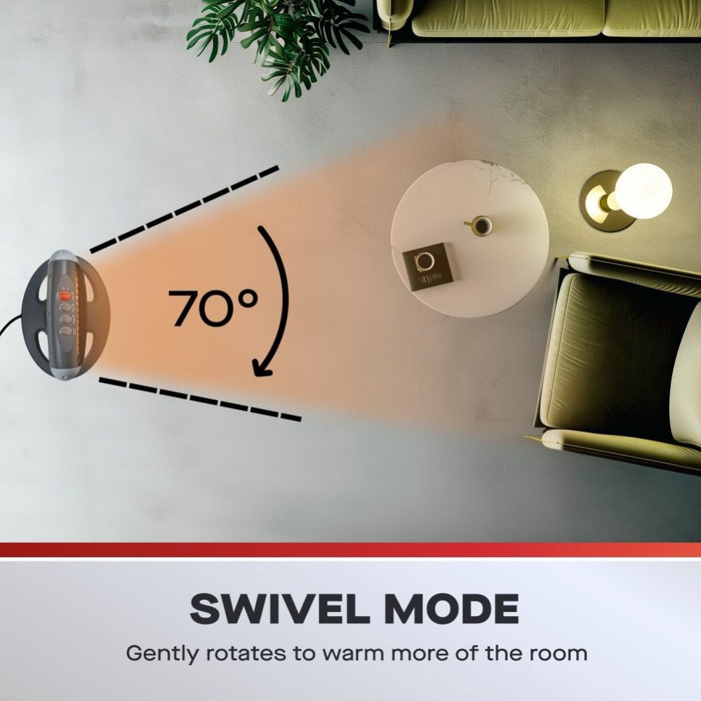 With 3 adjustable heat settings - 400W, 800W, and 1200W, you can tailor the warmth to suit your environment. Whether you need a gentle heat for a cosy evening or a more intense setting for frosty days, this heater has you covered. The 70° oscillation function ensures even heat distribution, so no corner of the room is left out.