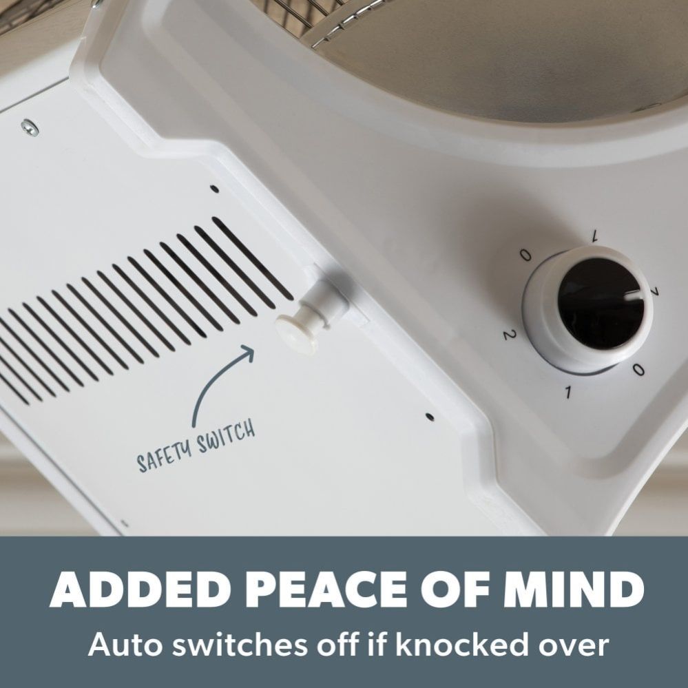 Safety is a top priority with the Daewoo 1200W Ceramic Heater. It comes equipped with a safety tip-over switch that automatically shuts off the heater if it’s accidentally knocked over, ensuring your peace of mind. Additionally, the mesh guard adds an extra layer of protection, making it safer to use in homes with pets or children.