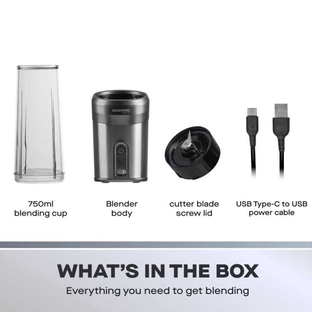 Daewoo Cordless Pro Handheld Blender – 450ml, 200W, USB Rechargeable Portable, powerful, and perfect for on-the-go blending – from gym smoothies to office shakes.