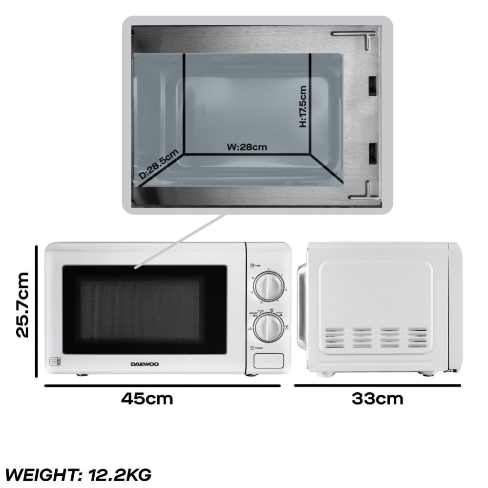 Daewoo 20L White Manual 800W Microwave with Stainless Steel Cavity
