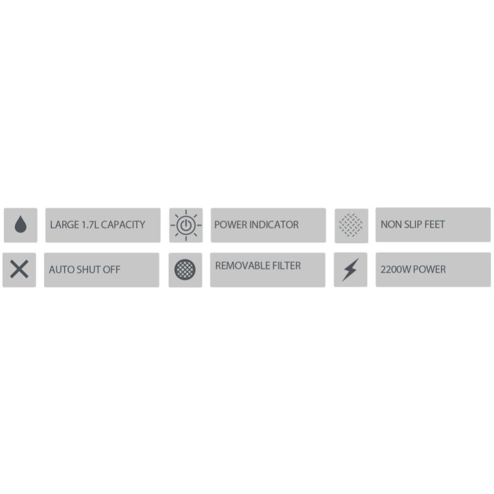 Large 1.7L capacity Auto-shut off Removable filter 2200W power output