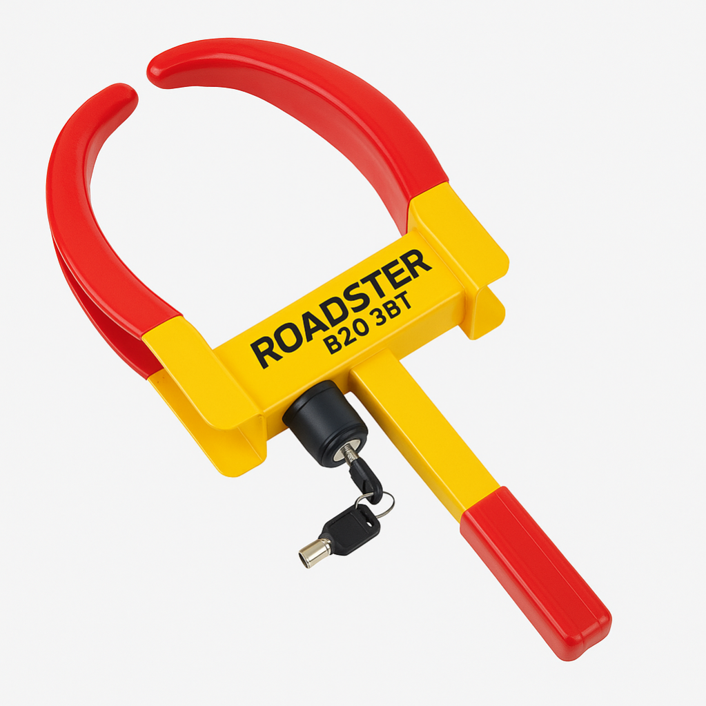 The ROADSTER B20 3BT Wheel Clamp Lock is a high-visibility security device designed to prevent vehicle theft and unauthorized parking. Built from reinforced steel with a dual-color safety finish in yellow and red, it offers both visual deterrence and physical strength.